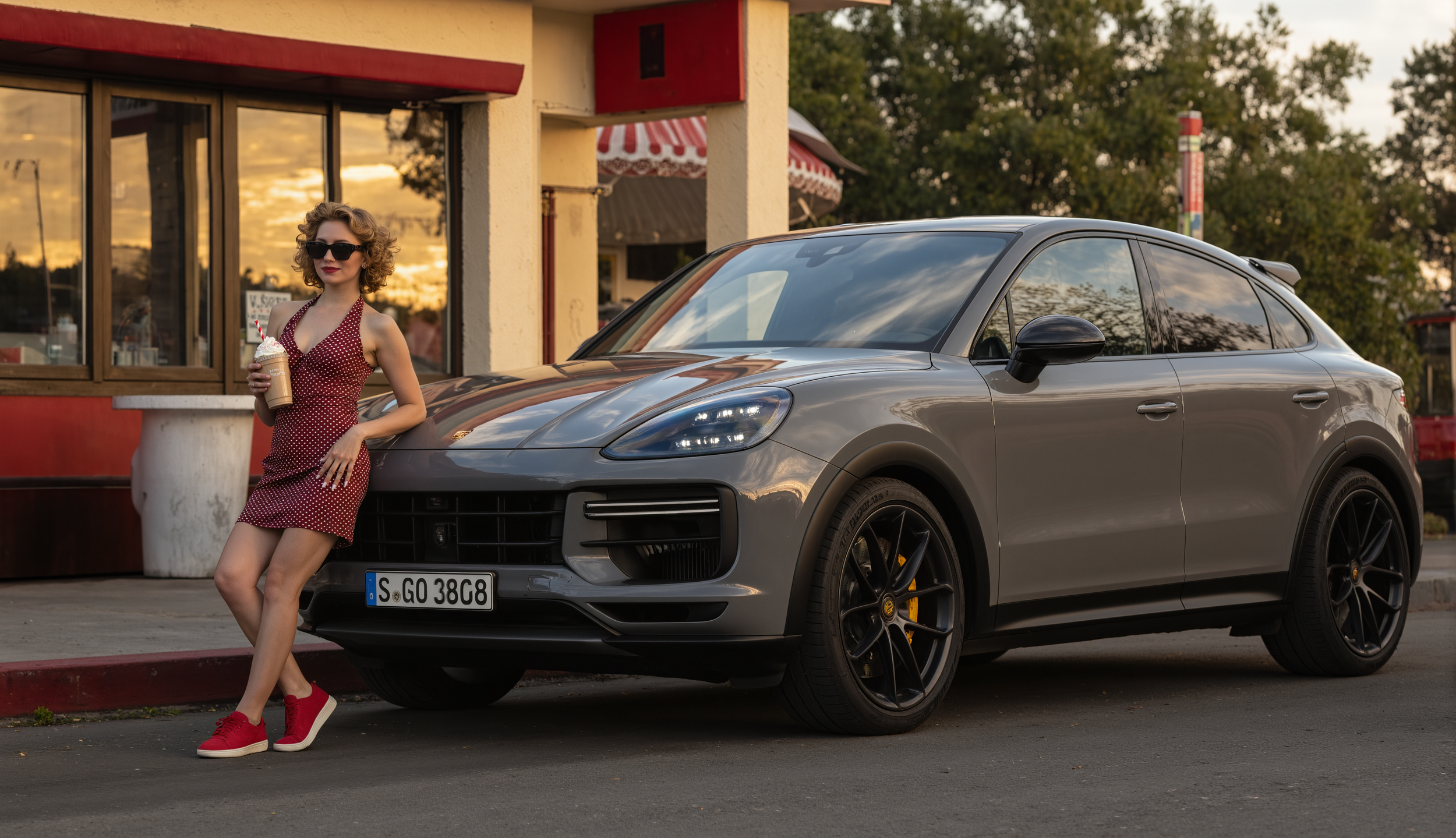 The AI-generated Porsche Cayenne imagery was created using a retrained FLUX AI model with a carefully curated data set.