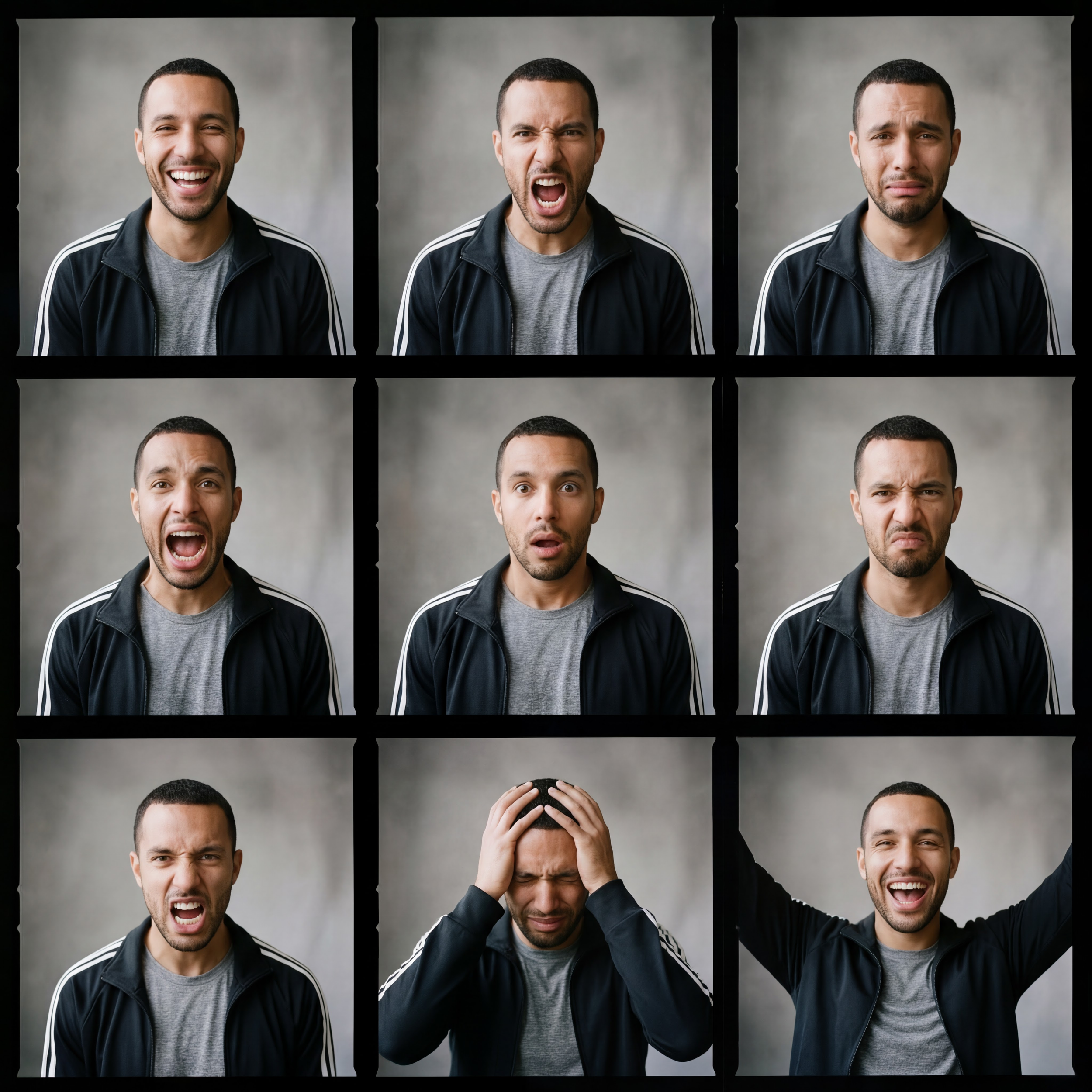 The background does not matter much, as long as only one person is visible and they are clearly exposed without overexposure or deep shadows. After capturing the neutral photos, also take a few close-ups with clear emotional expressions, such as smiling, serious, or surprised.